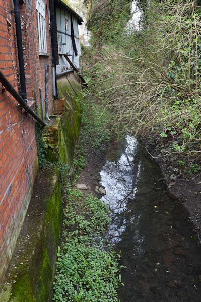 Back on the Thames Path. This ditch was the channel leading to the Wharf by the mill