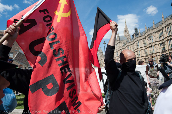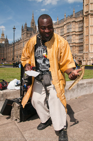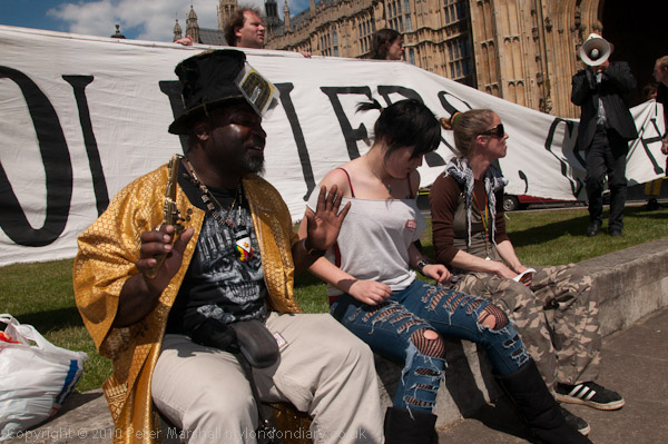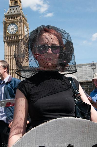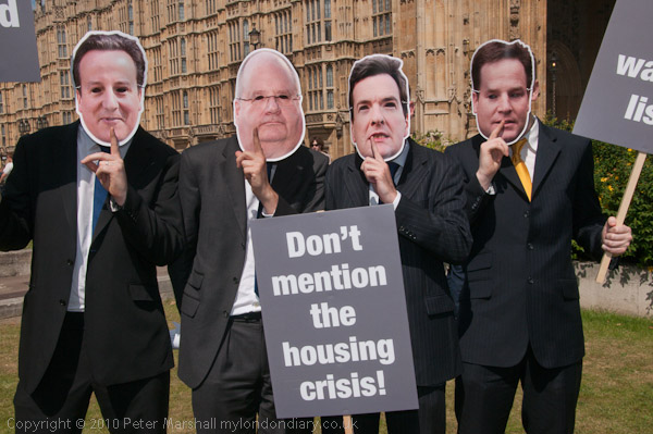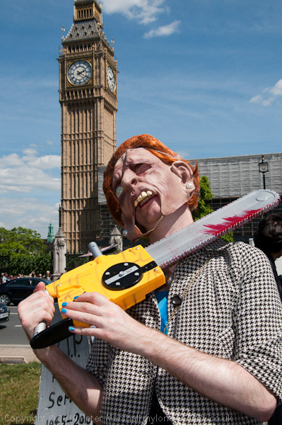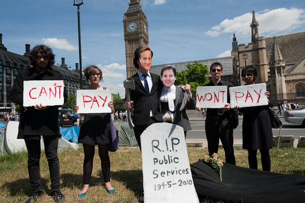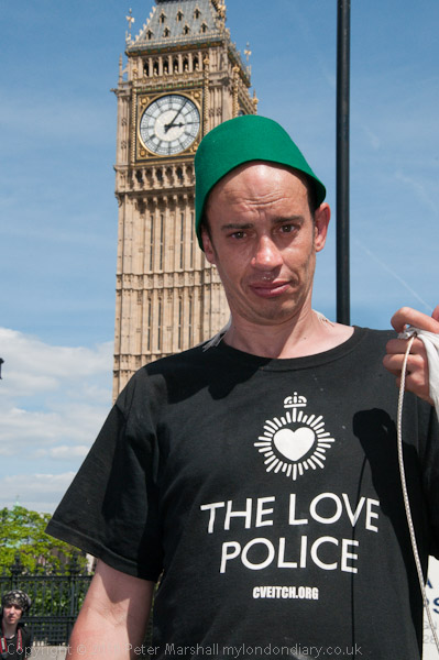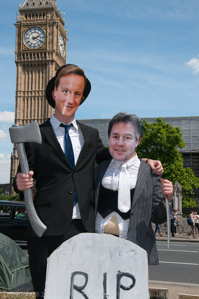 'Can't Pay Won't Pay' pose in front of Big Ben in Parliament Square