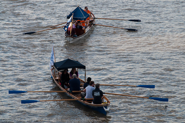 Two cutters on their way up to the start of the race, Lloyds Register and the Worshipful Company of Water Conservators
