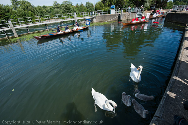![]() The next family of swans was waiiting just outside Bell Weir Lock at Runnymede ![]() ![]() This time the uppers were careful to close the gaps as they moved in ![]() ![]() ![]() ![]() |