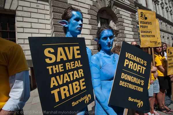 Avatar aliens join in the protest against destroying the Dongria tribe