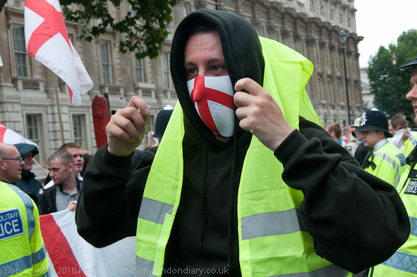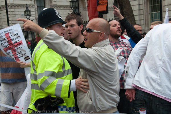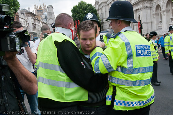 Counter-protesters followed the march on the opposite side of Whitehall until they were stopped by police