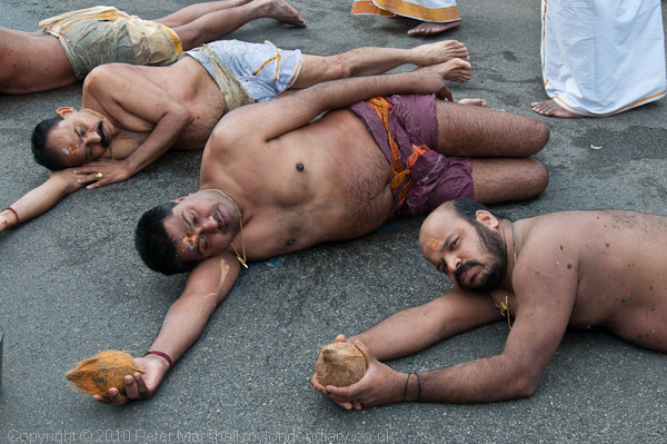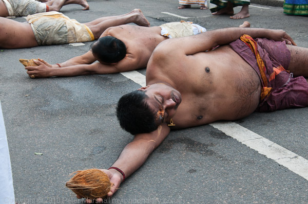 ![]() ![]() ![]() ![]() Men roll along the street holding coconuts |