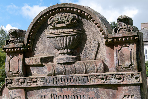 John Peel's buried with a hound and two horns on his gravestone in 1854