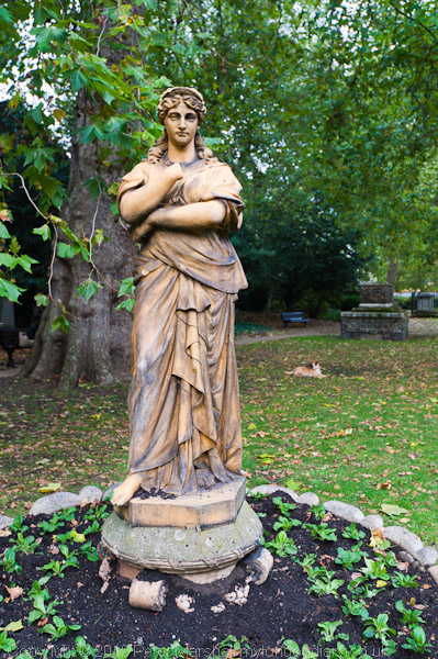 Thomas Ciram, founder of the Foundling Hospital and a gold painted statue in St George's gardens