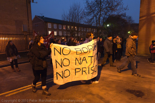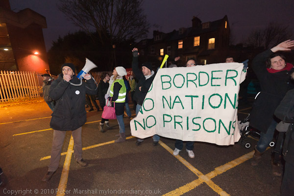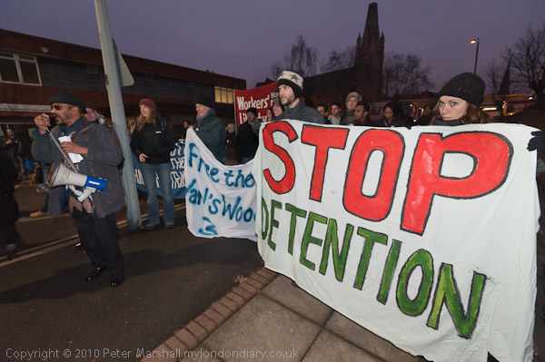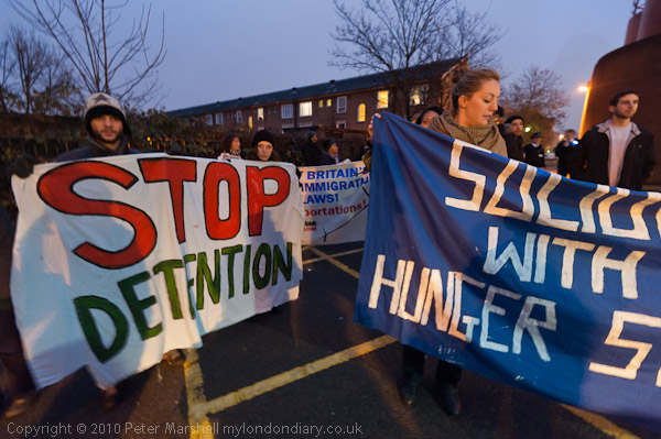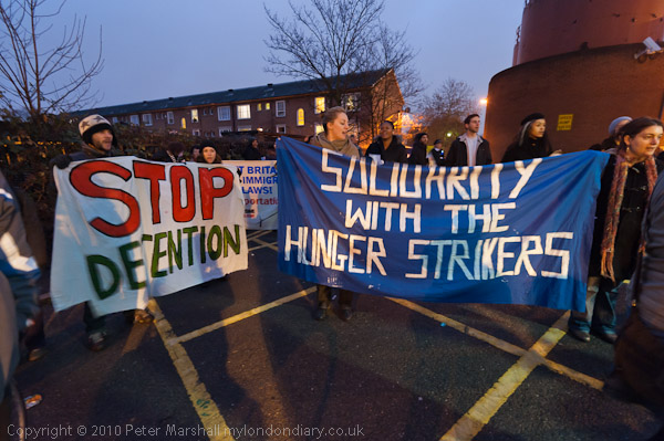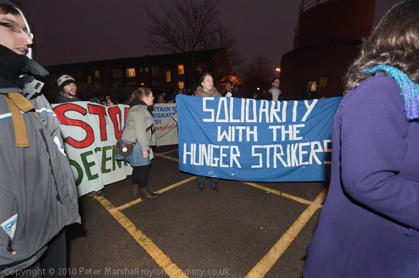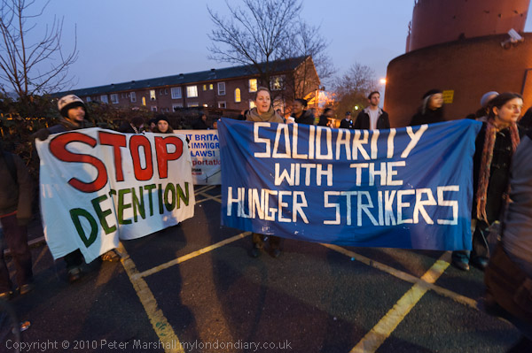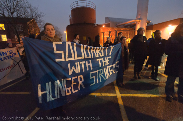 Solidarity with the Hunger Strkers and Stop Detention say the banners