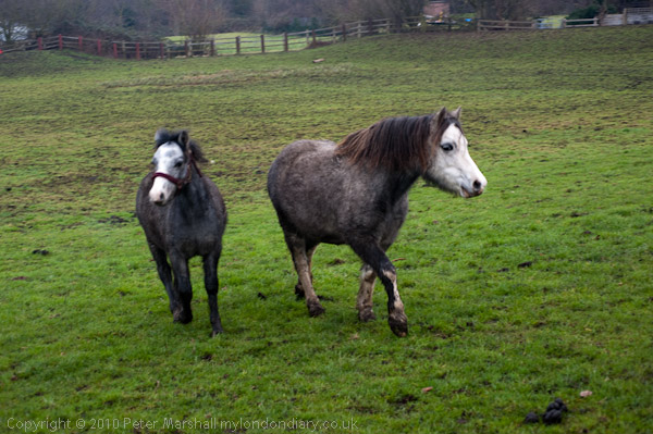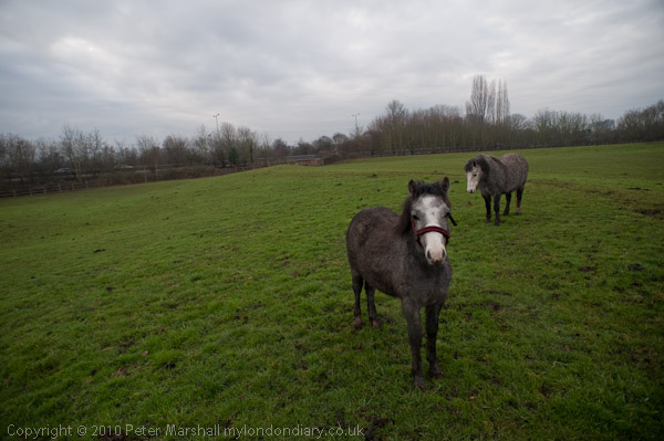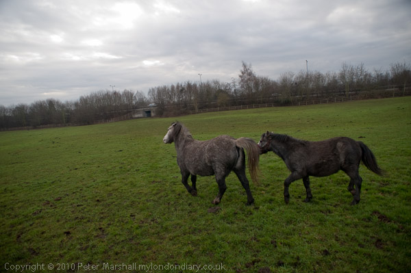 Ponies gambol close to the site of an ancient settlement to the north of Staines