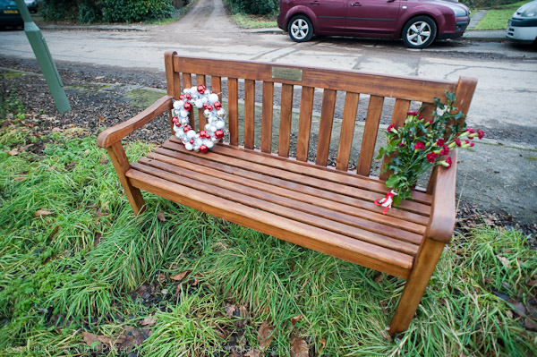 A seat and flowers in memory of a woman killed by a train after getting trapped in a faulty crossing on the line