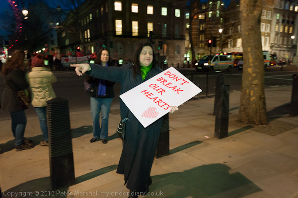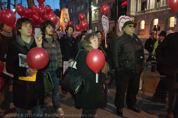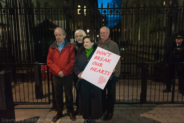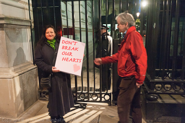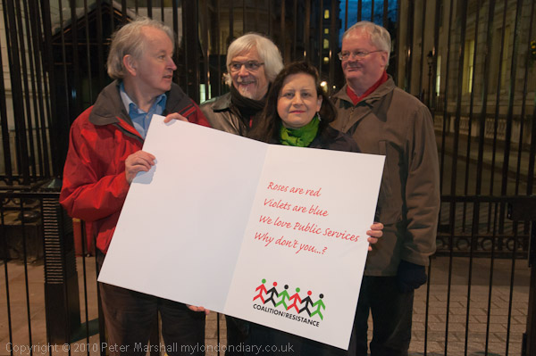 The protesters were refused admission to Downing St, but police did take the card and promise to deliver it