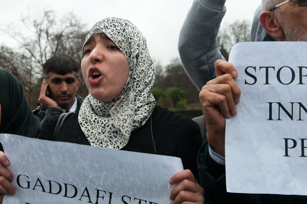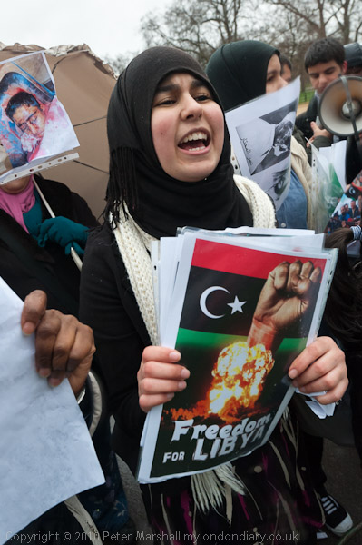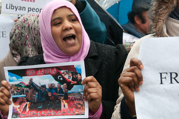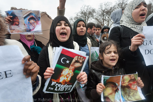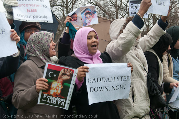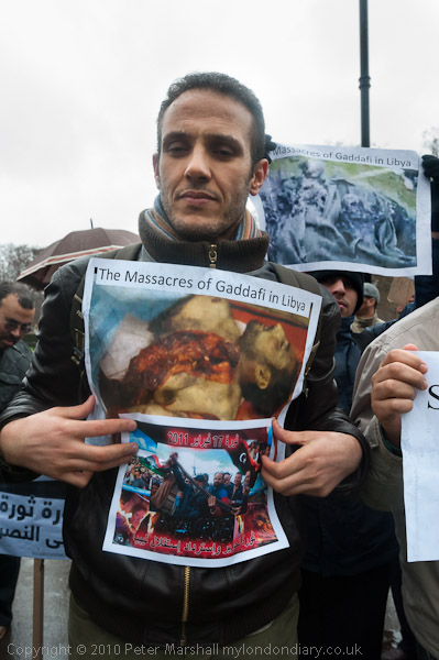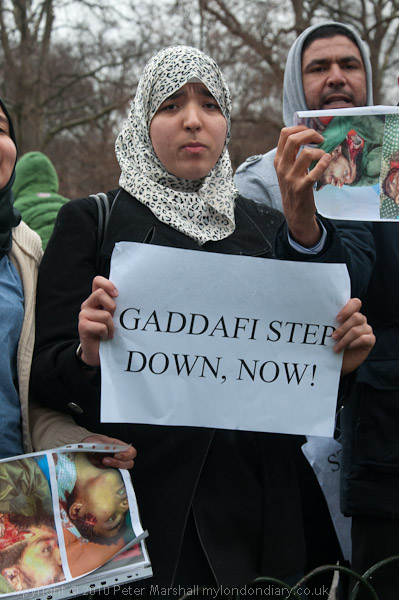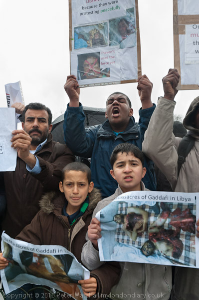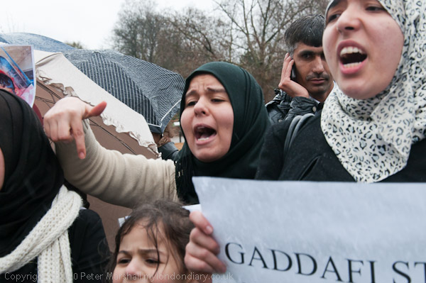 The Libyan supporters arrived a little late to find the pavement occupied, so decided to protest from inside Hyde Park