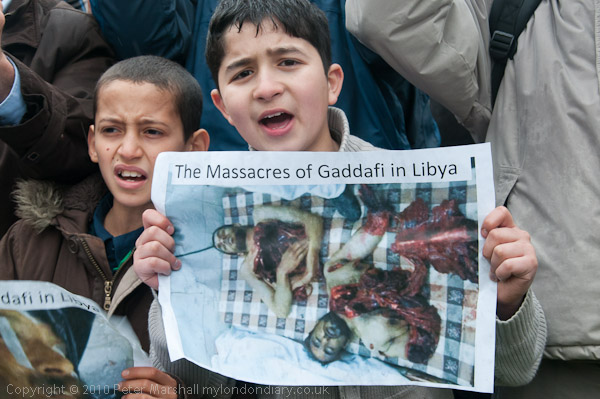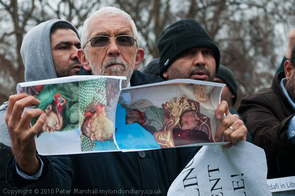 Many held pictures showing the atrocities carried out by Gaddafi's men