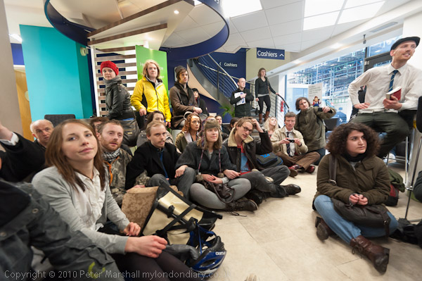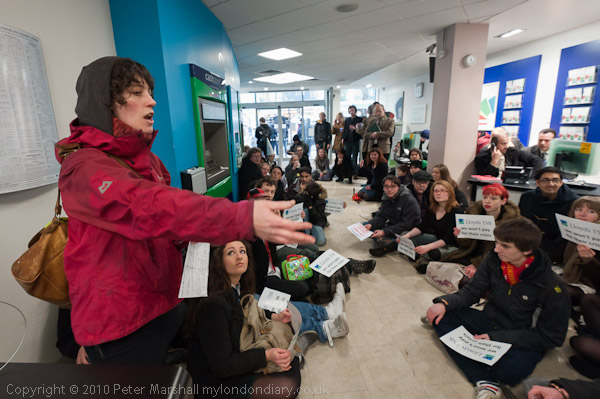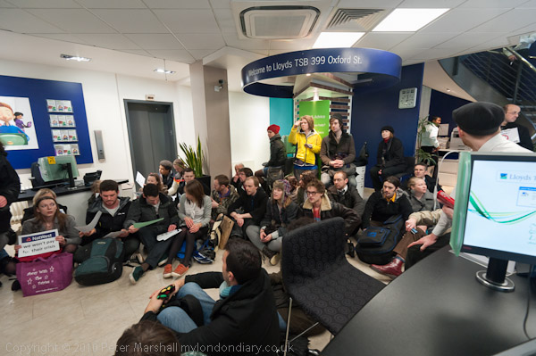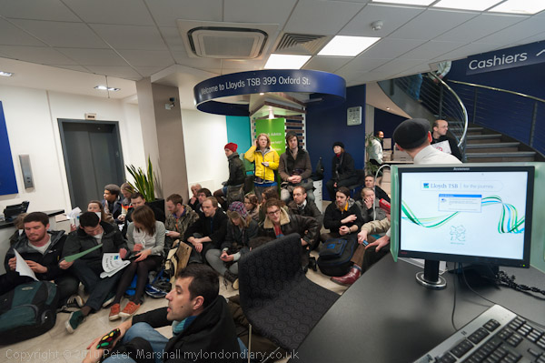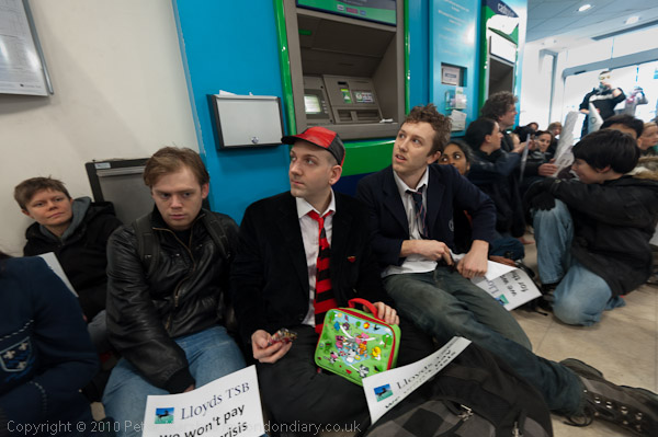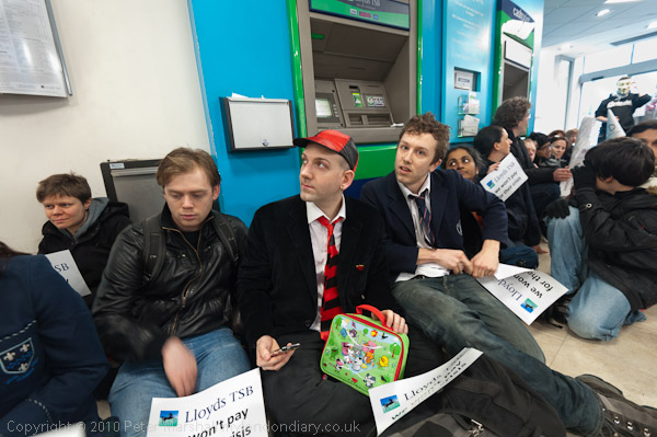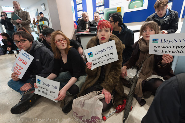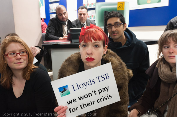 Many of those taking part held up slogans; the most popular was 'Lloyds TSB we won't pay for their crisis'