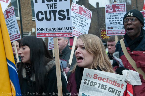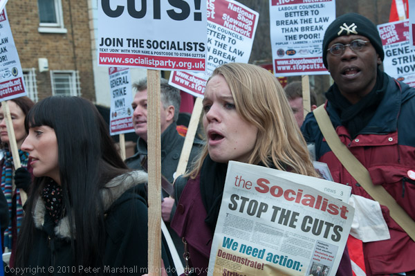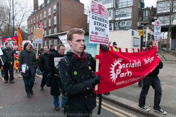 which sets off towards Lambeth Bridge and Westminster. Nottingham Socialist Party banner