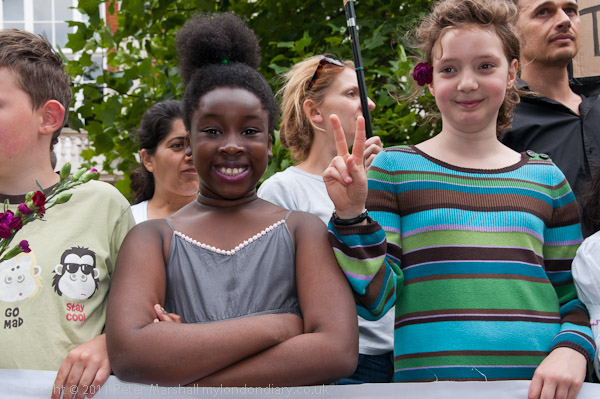 Or at least I think that was her message. As I left an older woman was reading messages of support and motions passed by her union