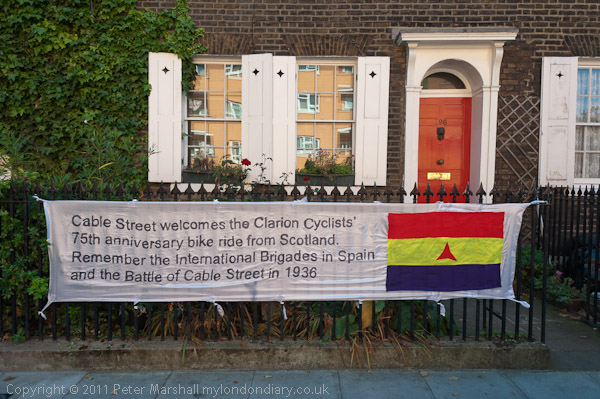 Welcome Banner for the Clarion Cyclists 75th anniversary bike ride from Scotland to Cable St