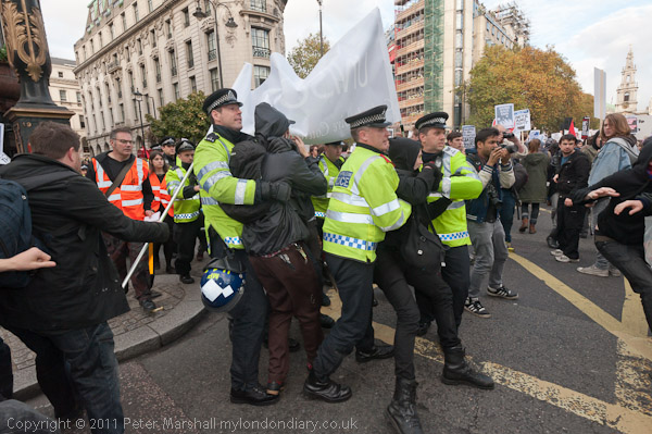 The march was proceeding quietly when a group of officers came in and grabbed some of the marchers