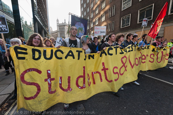 The Education Activist Network banner and some noisy chanting in Fetter Lane