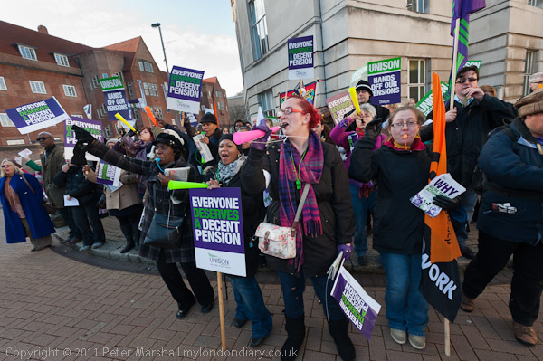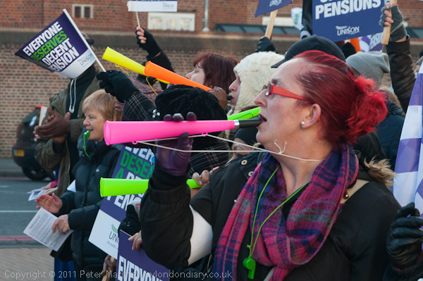 Earlier in the day there had been pickets at various workplaces in Wandsworth including the town hall