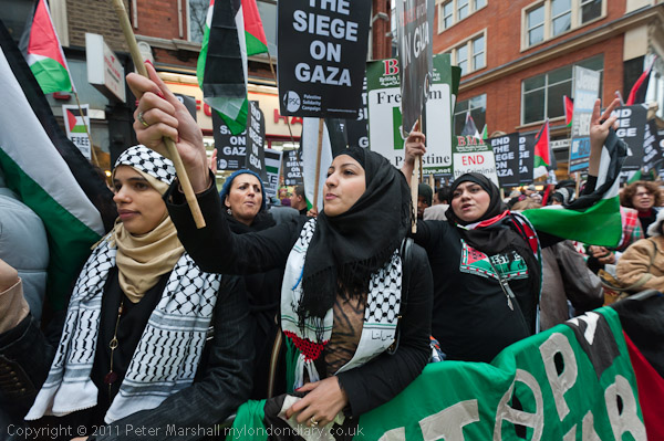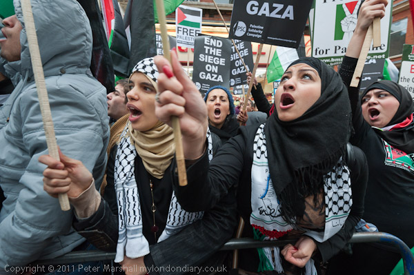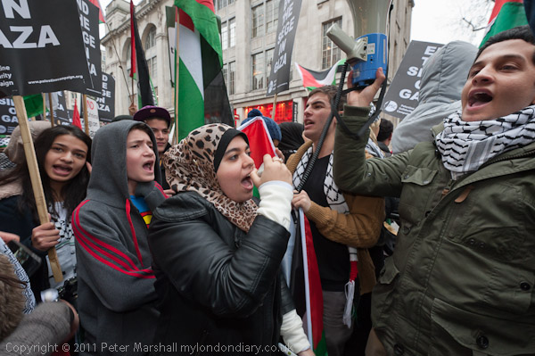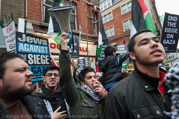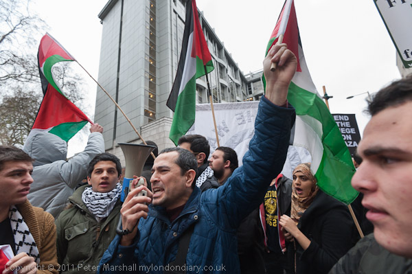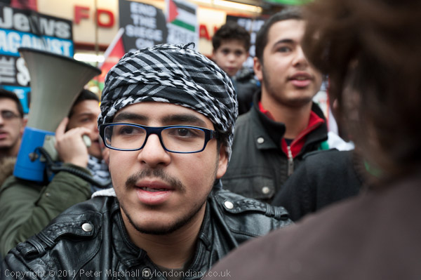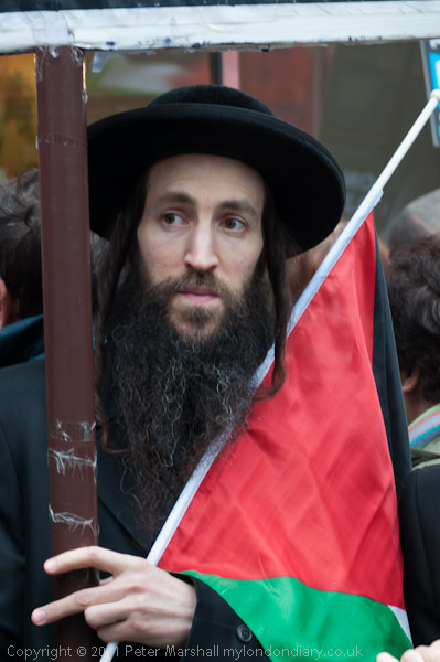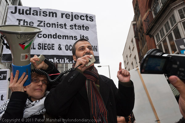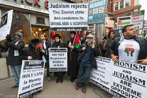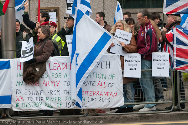 On the pro-Israel protest there were posters 'Support Democracy - Support Israel' and a Union Flag with the message