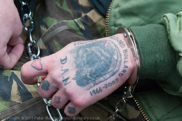 But people begin to handcuff themselves to the chain in case the police try to move them