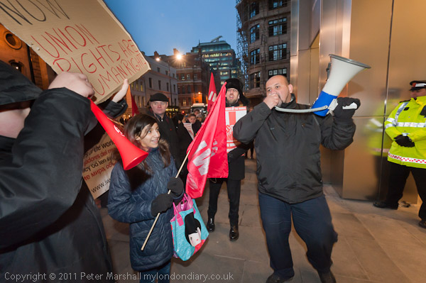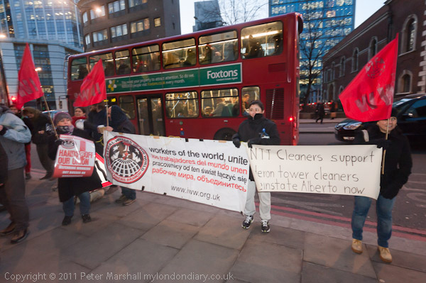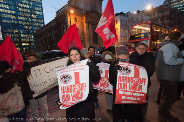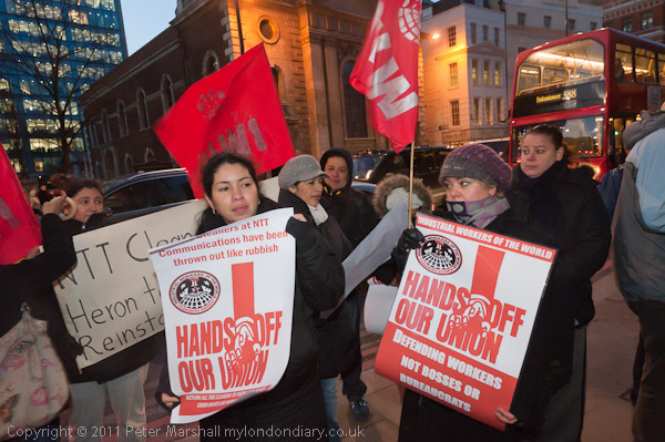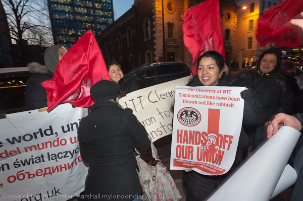 The cleaners are now in a branch of the IWW. At the protest were some sacked from NTT Communications