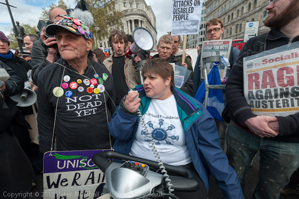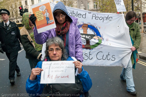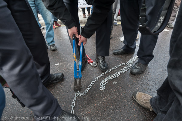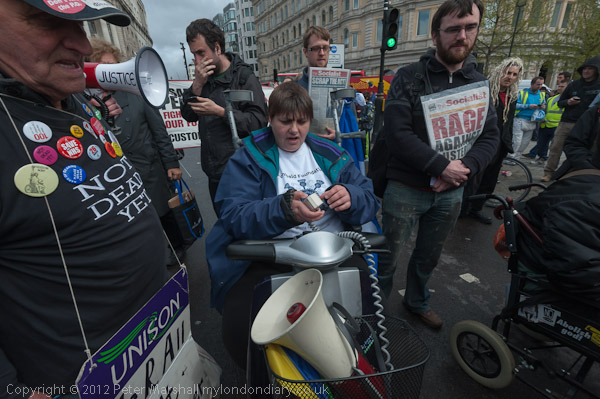 But the protesters moved onto the road and chained their wheelchairs in a line across it