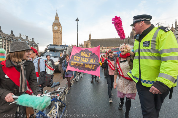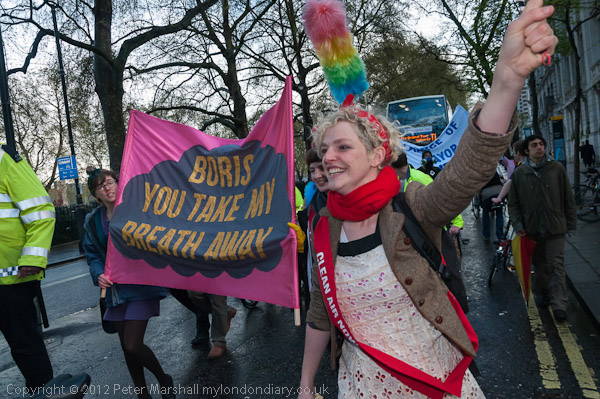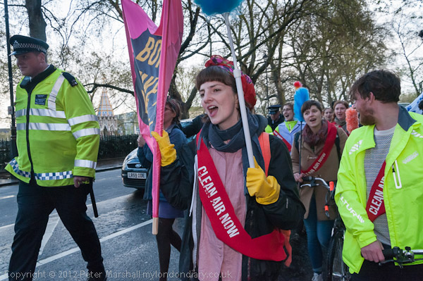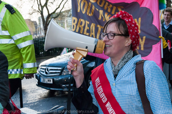 The march went up Millbank, accompanied by England's tallest policeman - 7ft 2" and 23 stone with size 17 boots