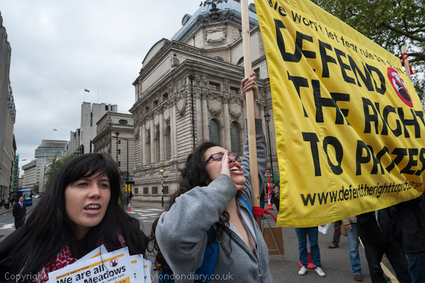 The Defend The Right To Protest group reminded police marchers of Alfie Meadows, Sean Rigg, Ian Tomlinson, Jean Charles de Menezes and others