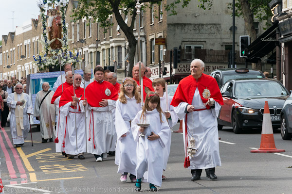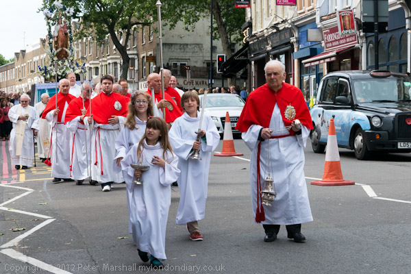 The procession goes around the neighbourhood and makes its way back towards the church down Farringdon Rd
