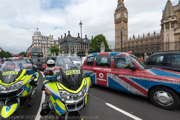 Police decided to block traffic from going around Parliament Square, directing the taxis past parliament towards Millbank