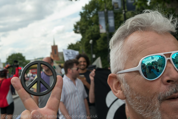 A number of people wore the 'Official Protester' t-shirts from the Space Hijackers