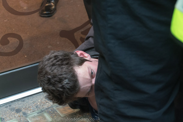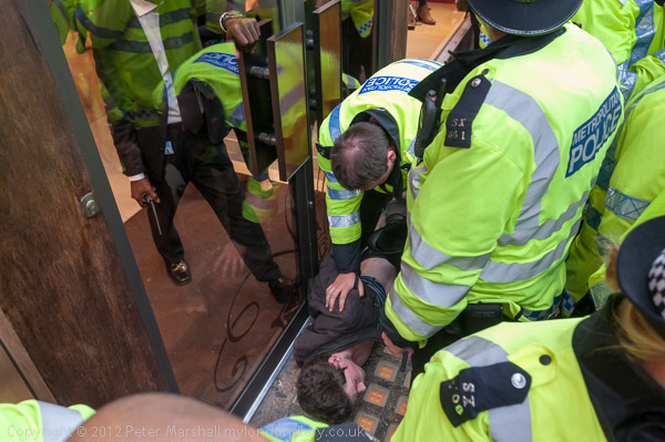and arrested one protester. They tried to hide him from cameras as they twisted his arms behind his back