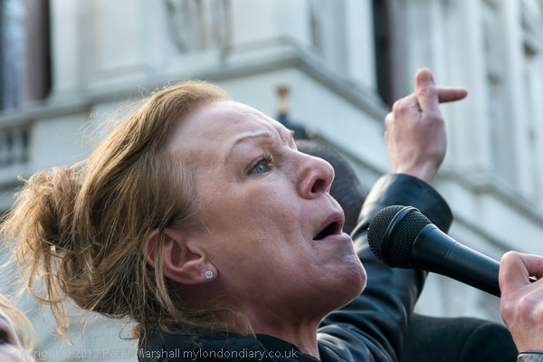The protesters stopped to hold a rally on the roadway opposite Downing St