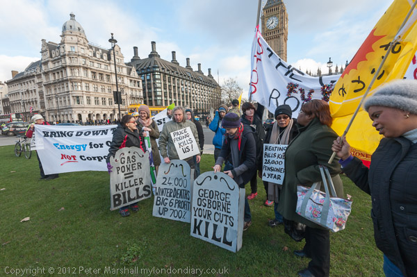 Kick Nuclear with Fukishima flags and a large banner 'Climate Change: Deadlier than the Defecit'