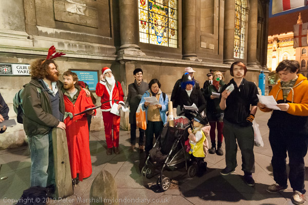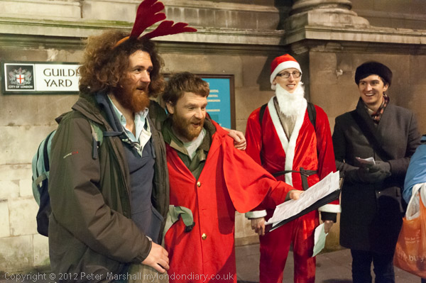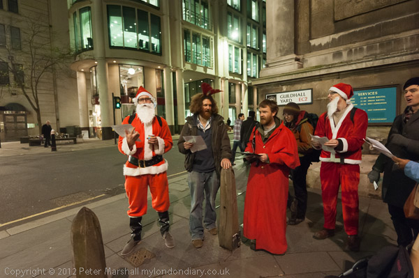 ![]() A carol inside the RBS on Threadneedle St ![]() ![]() ![]() ![]() In Guildhall Yard ![]() ![]() |