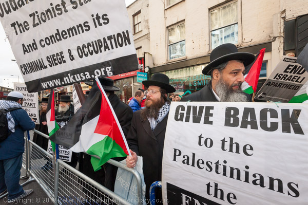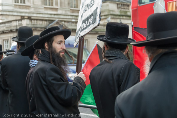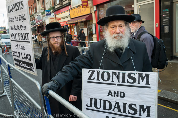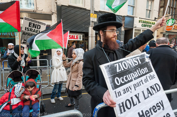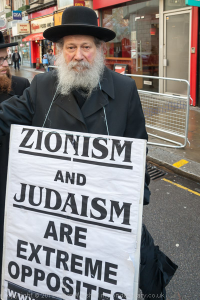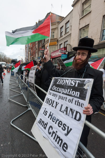 The Orthodox Neturei Karta to whom Zionism is a heresy were there to protest