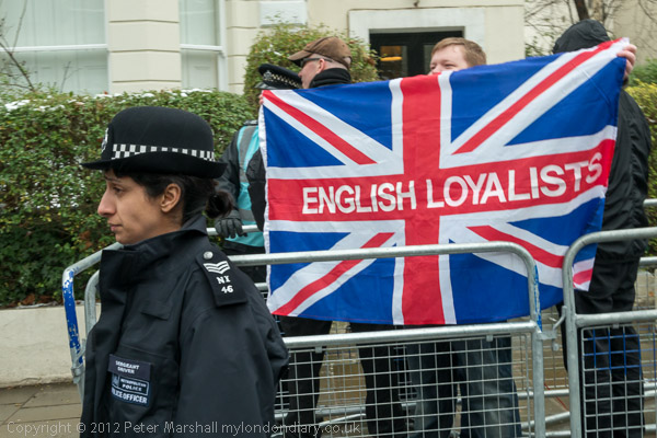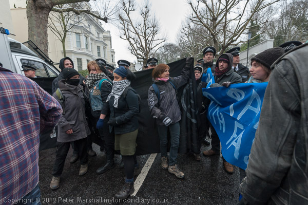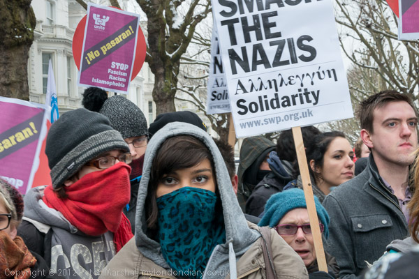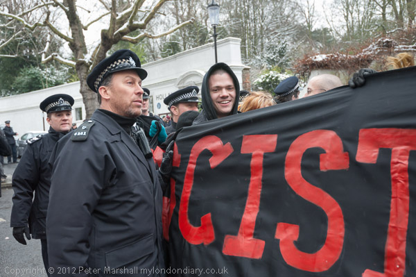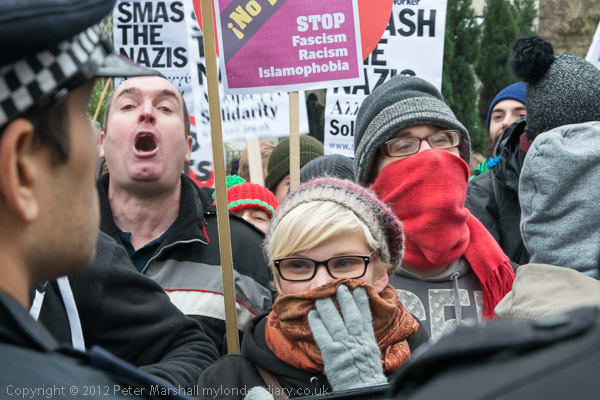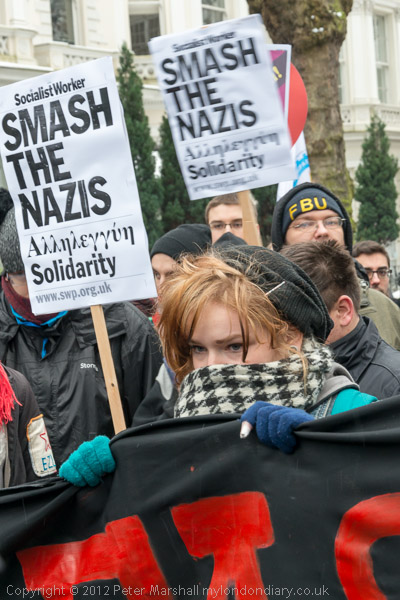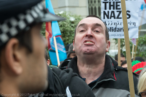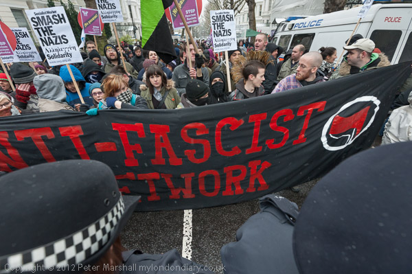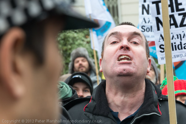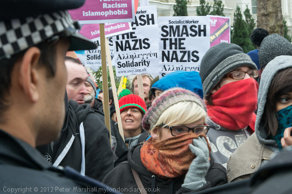 Police slowly moved the Anti-Fascists away from the British Friends Of Golden Dawn'