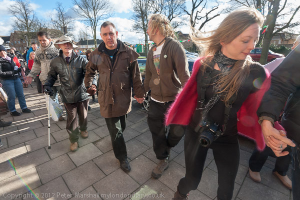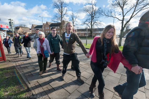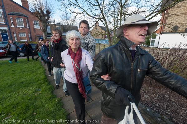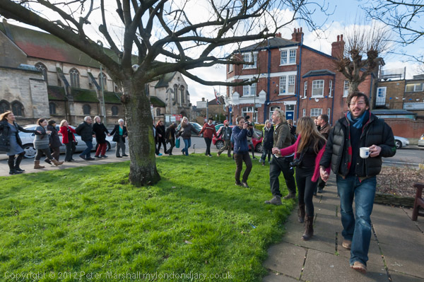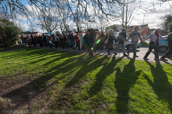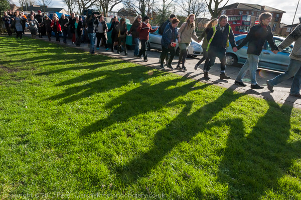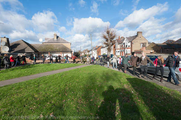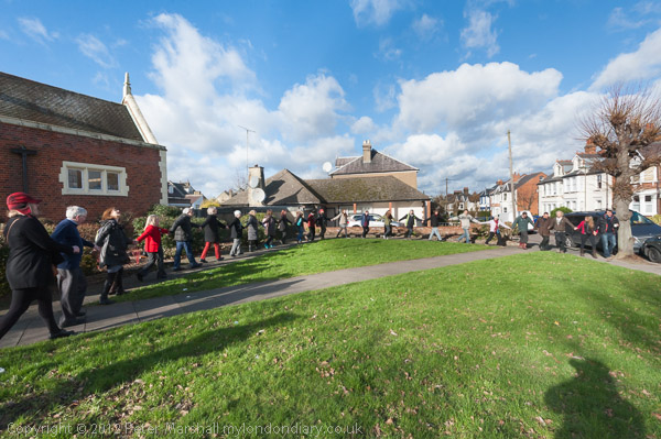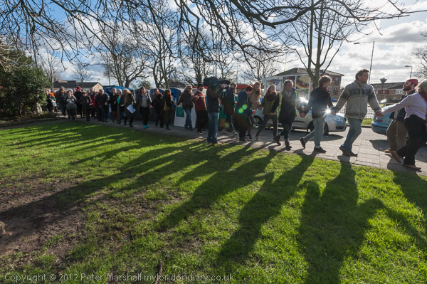 After the handover people went out to walk around the two greens on each side of the library which they want