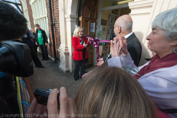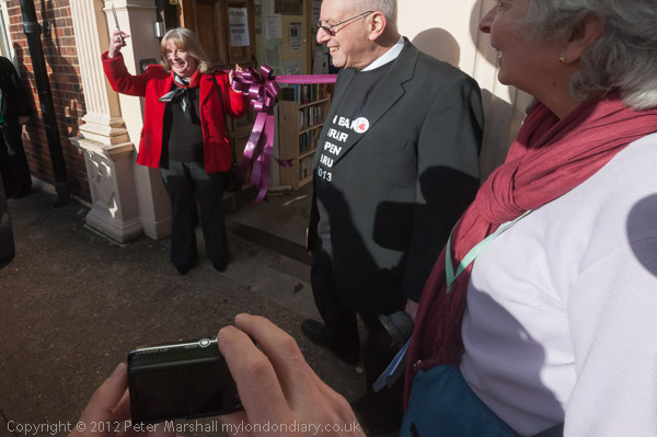 and local councillor Pauline Coakley Webb gets the scissors ready