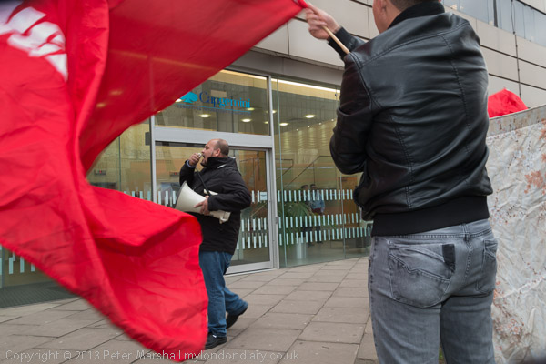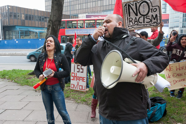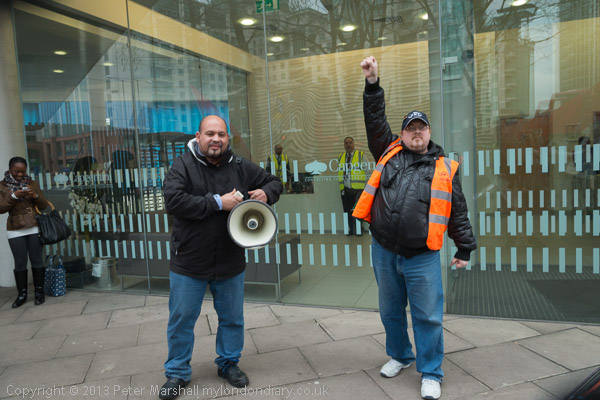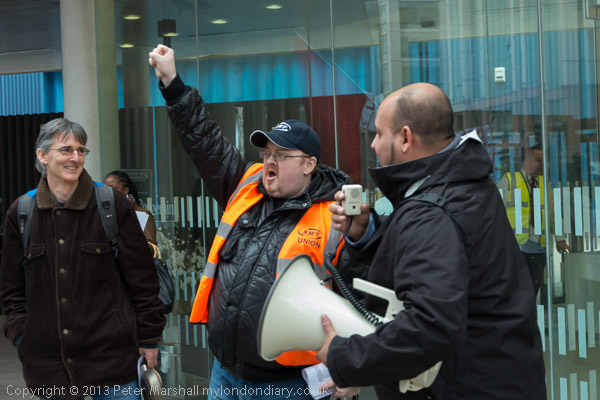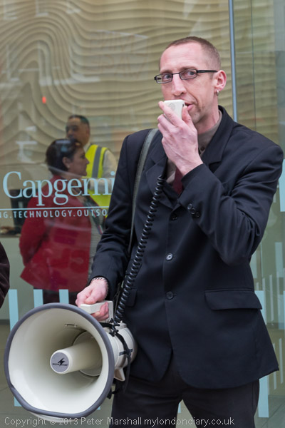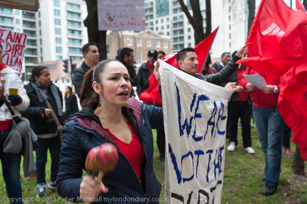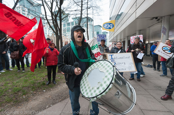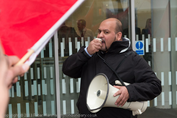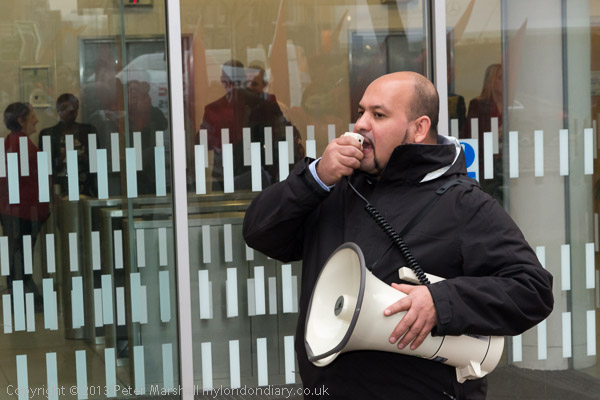 Cleaner's leader Alberto Durango of the IWGB speaking at the protest