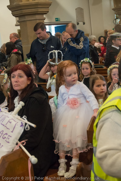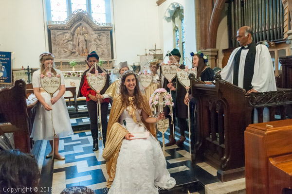 The Rector talks to the May Queen groups as they leave the church