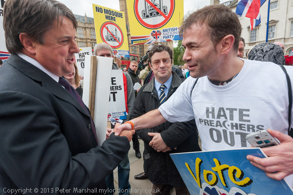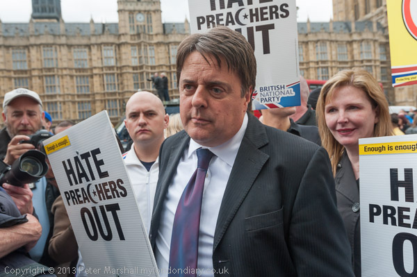 'Hate Preachers out' was the most common BNP placard, along with one that proclaimed 'No Mosque Here'.
