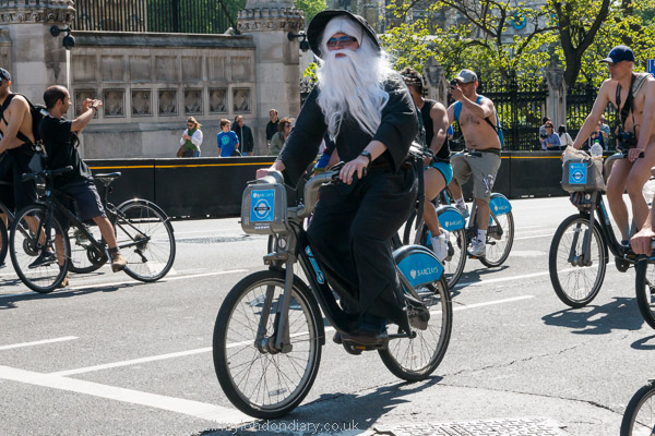 ![]() ![]() ![]() ![]() ![]() ![]() The ride had moved off and I was on my way to Westminster station when another group of naked riders ![]() came around the corner - the riders from Marble Arch had finally made it after their delayed start. ![]() |