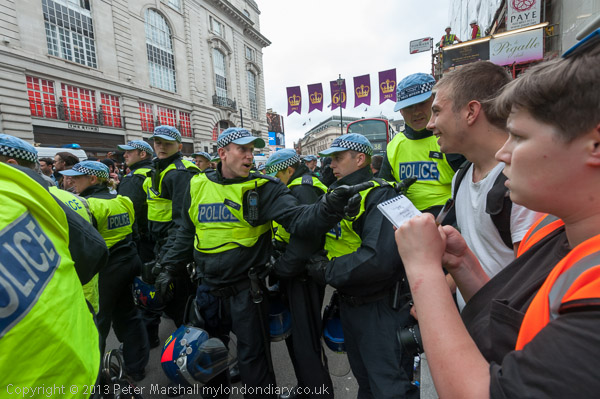 I rejoined the protest which was still taking place at Piccadilly Circus