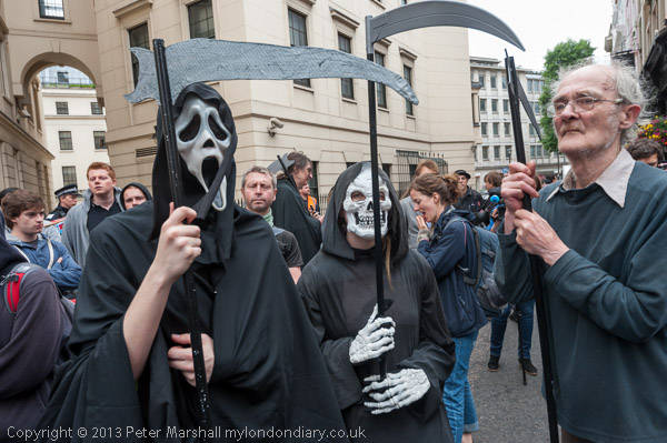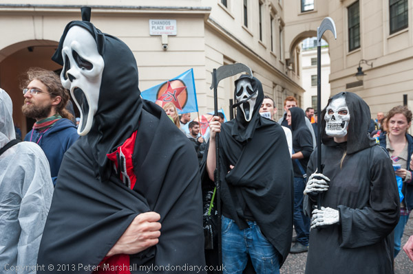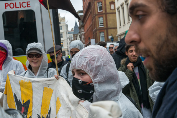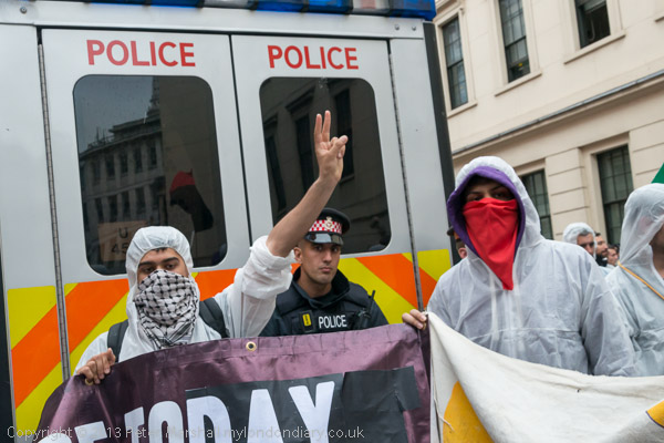 to Charing Cross Police station, where many protesters were taken from the previous day's anti-G8 protest.