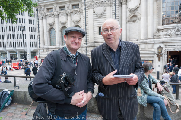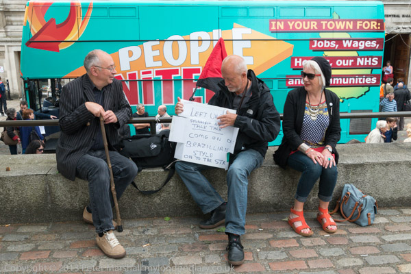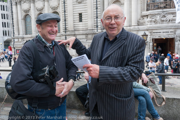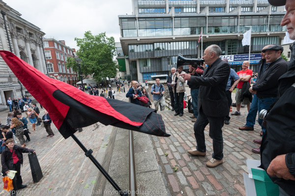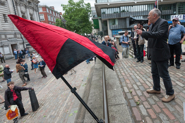 ![]() 'Left Unity sponsored by Talk Talk. Come on do it Brazilian Style on the streets' ![]() ![]() Nick Heath ![]() and Ian Bone ![]() ![]() shake hands ![]() Ian Bone speaks. One person on the street below is listening ![]() |