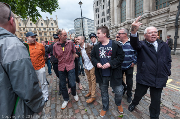 Some of the marchers made their way through, others stopped ot argue. They turned in front of the QEII centre