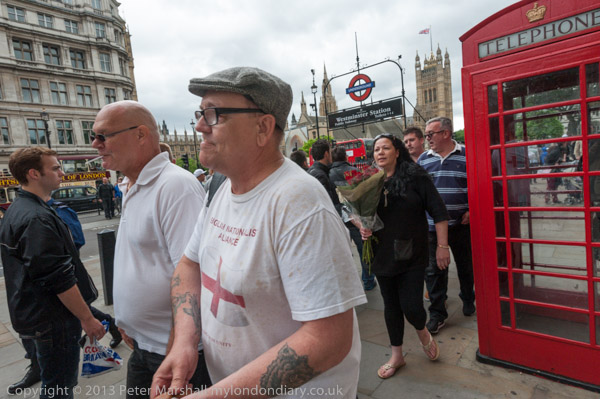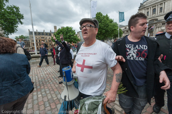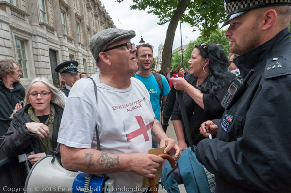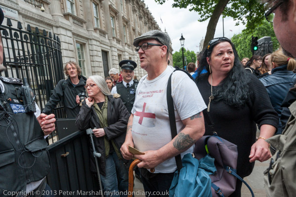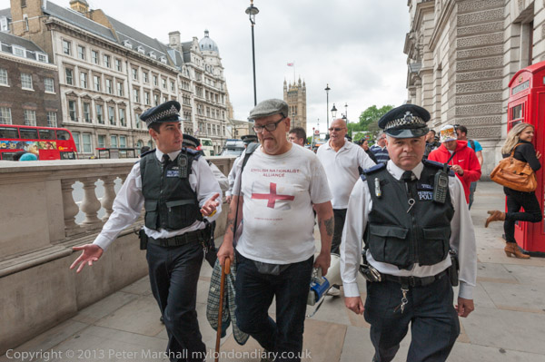 Bill Baker laid the flowers he had carried at the Cenotaph; again police kept the group moving