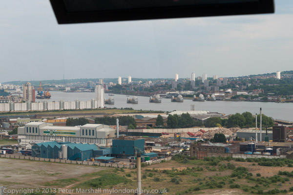 ![]() Coming out of North Greenwich station you walk over a Philip Larking quote. Not one of his better lines ![]() ![]() ![]() A better one from Michael Donaghy. Who? I found his obituary in the Independent ![]() Greenwich only has a single gas holder now ![]() There wasn't a great queue to get on. Though I did share a pod with 5 others ![]() The Thames Barfrier and Woolwich ![]() Looking back at the station ![]() and up to the top of the cableway ![]() Excel Centre and R Victoria dock ![]() At least 9 pods visible on the cable |