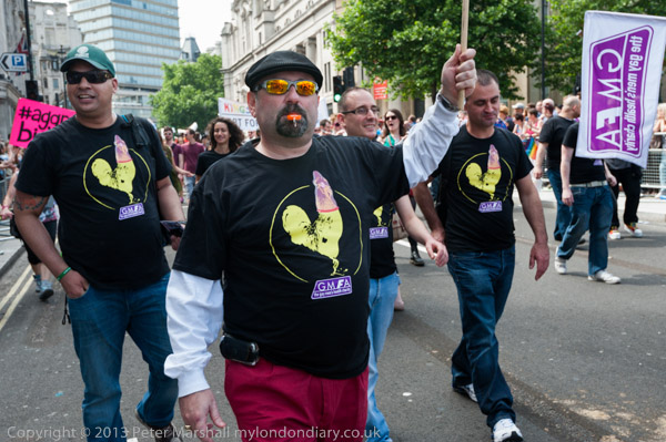 GMFA - the gay men's health charity, with a cockerel wearing a condom